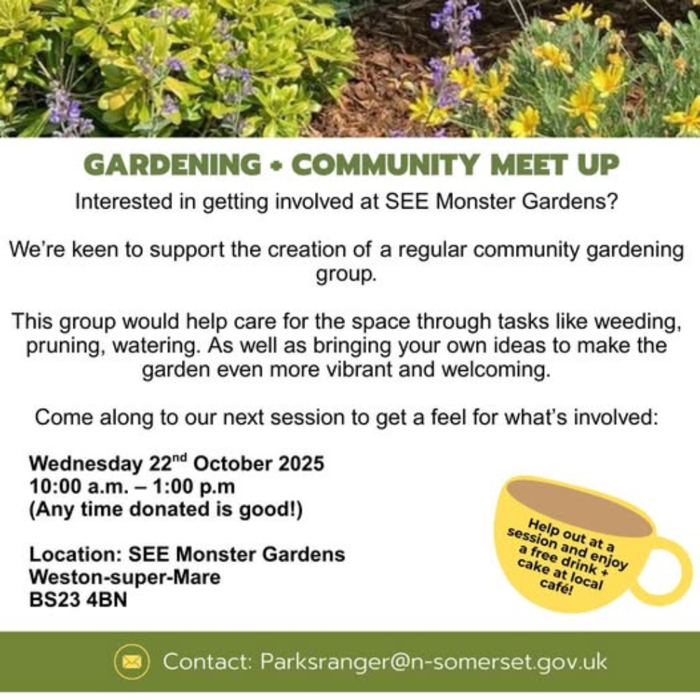 We are aiming to create a hands-on group helping to take care of the SEE Monster Gardens and other community gardens, through weeding, pruning, watering etc.