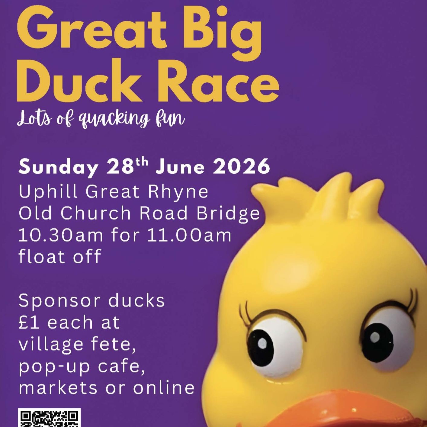 Sponsor ducks £1 each at village fete, pop-up cafe, markets or online